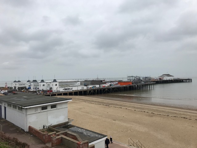 On a pallid grey Friday on 1 March 2019, I set out to visit Clacton. This day marked the near month-long countdown to Britain supposedly crashing out the European Union on 31 March, 2019. My Dad accompanies me on the trip. He used to live in Essex and we’d come to Clacton-on-Sea in my late teens for day trips. My Dad had separated with my Mum when I was 15 in 1994 and then later moved to Essex to work at the University. I’d come down for occasionally awkward yet generally fun weekends when he lived in the village of Wivenhoe, and then spend equally fun yet also equally awkward days out in Clacton, enjoying the attractions on the pier, walking the promenade and eating heaped plates of fish and chips.