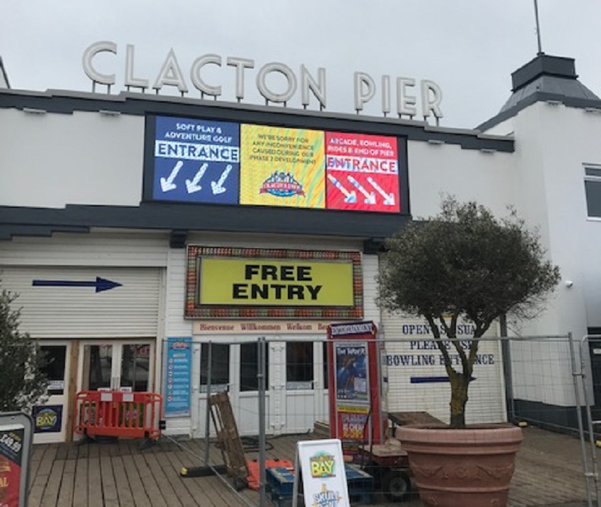 The flat landscape outside seems to go on forever. We roll through fields of mobile homes just outside the fabulously named, Weeley Heath. Onwards to Thorpe Le Soken, with the station surrounded by carcasses of derelict buildings, clinging on life support via a scaffolding exoskeleton. You can just about make out a quite pretty village beyond the Soviet bleakness. Eventually we roll into Clacton-on-Sea – all change, end of the line.